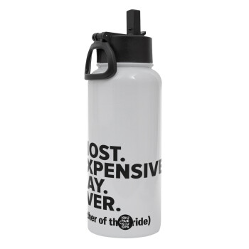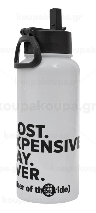 Most expensive day ever, Metal mug thermo White with Straw and Spout Lid (Stainless steel), double wall, 950ml