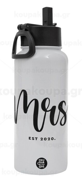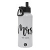 Mr & Mrs (Mrs), Metal mug thermo White with Straw and Spout Lid (Stainless steel), double wall, 950ml