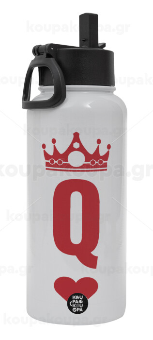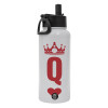 Queen, Metal mug thermo White with Straw and Spout Lid (Stainless steel), double wall, 950ml