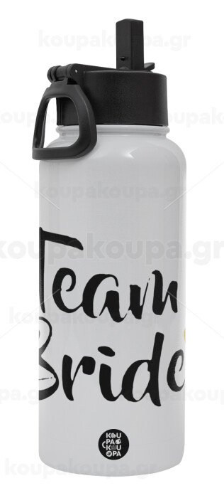 Team Bride, Metal mug thermo White with Straw and Spout Lid (Stainless steel), double wall, 950ml