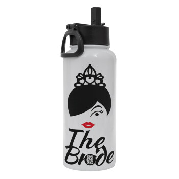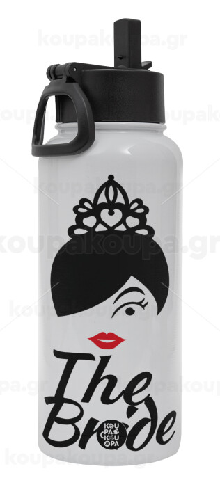 The Bride red kiss, Metal mug thermo White with Straw and Spout Lid (Stainless steel), double wall, 950ml