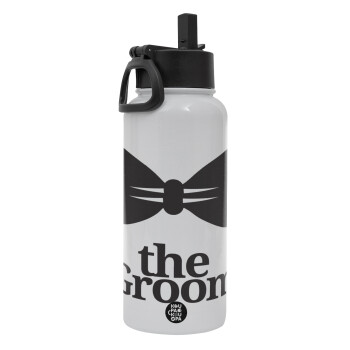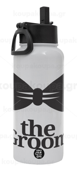 The Groom, Metal mug thermo White with Straw and Spout Lid (Stainless steel), double wall, 950ml