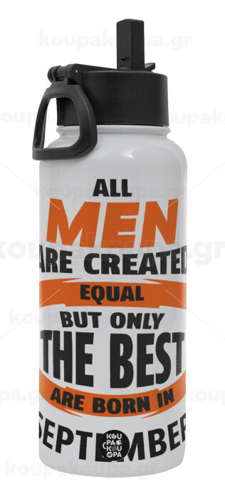 All men are created equal but only the best are born in September, Metal mug thermo White with Straw and Spout Lid (Stainless steel), double wall, 950ml