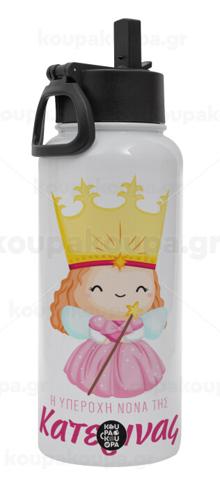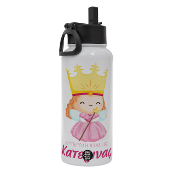 Η νονά μου, πριγκίπισσα, Metal mug thermo White with Straw and Spout Lid (Stainless steel), double wall, 950ml