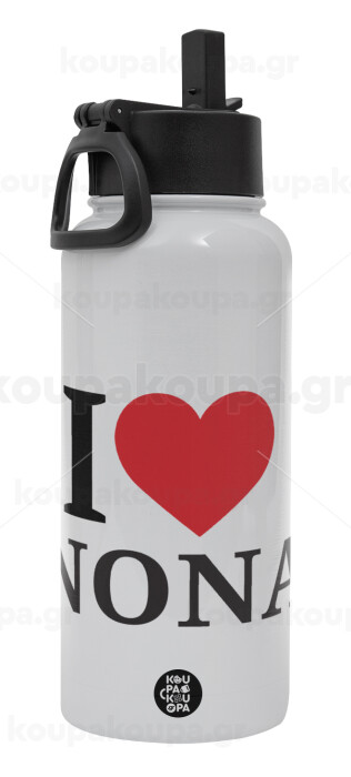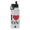 I Love ΝΟΝΑ, Metal mug thermo White with Straw and Spout Lid (Stainless steel), double wall, 950ml