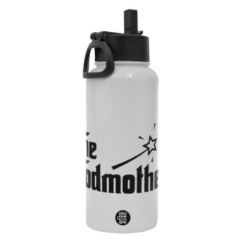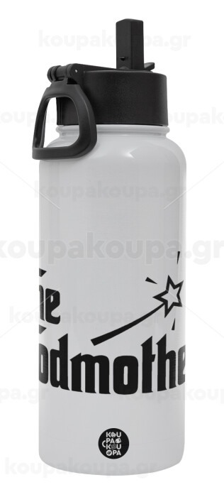 The Godmather, Metal mug thermo White with Straw and Spout Lid (Stainless steel), double wall, 950ml