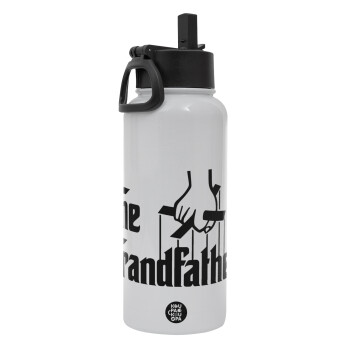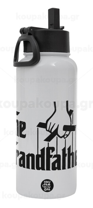 The Grandfather, Metal mug thermo White with Straw and Spout Lid (Stainless steel), double wall, 950ml