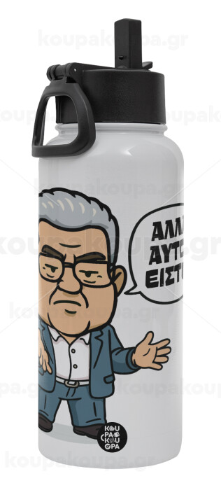 Κουτσούμπας, "Αλλά αυτοί είστε!", Metal mug thermo White with Straw and Spout Lid (Stainless steel), double wall, 950ml