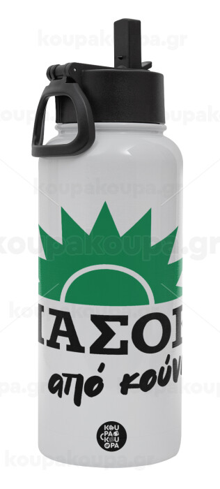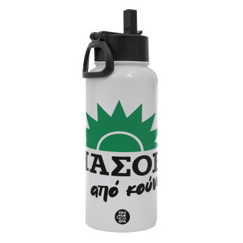 ΠΑΣΟΚ από κούνια, Metal mug thermo White with Straw and Spout Lid (Stainless steel), double wall, 950ml
