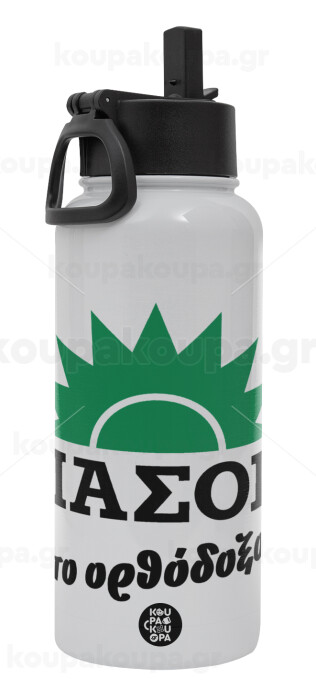 PASOK the orthodoxo, Metal mug thermo White with Straw and Spout Lid (Stainless steel), double wall, 950ml