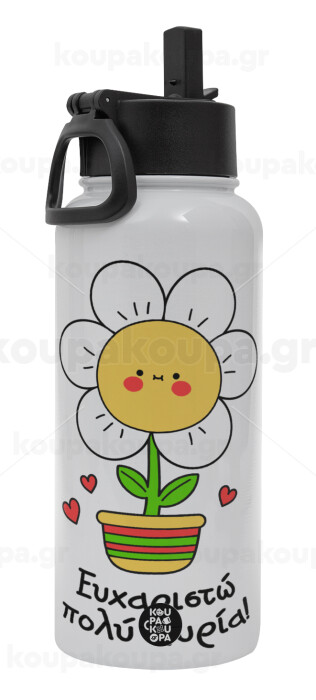 Ευχαριστώ πολύ κυρία!!!, Metal mug thermo White with Straw and Spout Lid (Stainless steel), double wall, 950ml