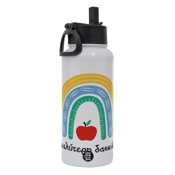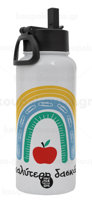 Η καλύτερη δασκάλα, Metal mug thermo White with Straw and Spout Lid (Stainless steel), double wall, 950ml