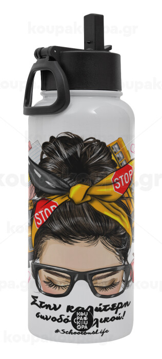 Στην καλύτερη συνοδό σχολικού!, Metal mug thermo White with Straw and Spout Lid (Stainless steel), double wall, 950ml