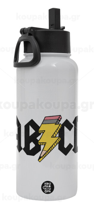 ABCD, Metal mug thermo White with Straw and Spout Lid (Stainless steel), double wall, 950ml
