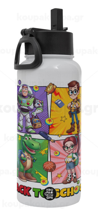 Back to the School Buzz & Friends, Metal mug thermo White with Straw and Spout Lid (Stainless steel), double wall, 950ml