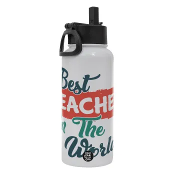 Best teacher in the World!, Metal mug thermo White with Straw and Spout Lid (Stainless steel), double wall, 950ml