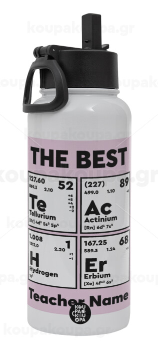 THE BEST Teacher chemical symbols, Metal mug thermo White with Straw and Spout Lid (Stainless steel), double wall, 950ml