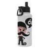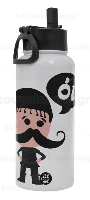 Κρητικός "Οι", Metal mug thermo White with Straw and Spout Lid (Stainless steel), double wall, 950ml