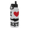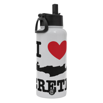 I Love Crete, Metal mug thermo White with Straw and Spout Lid (Stainless steel), double wall, 950ml