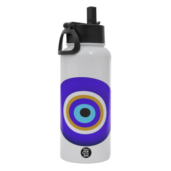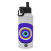 Το μάτι, Metal mug thermo White with Straw and Spout Lid (Stainless steel), double wall, 950ml