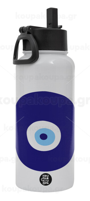 Χάντρα γαλαζιά, Metal mug thermo White with Straw and Spout Lid (Stainless steel), double wall, 950ml