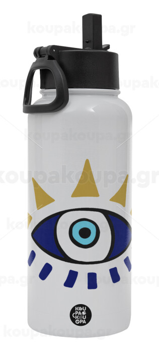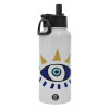 blue evil eye, Metal mug thermo White with Straw and Spout Lid (Stainless steel), double wall, 950ml