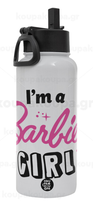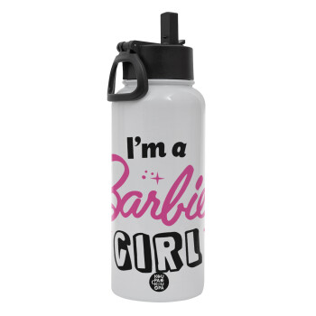 I'm Barbie girl, Metal mug thermo White with Straw and Spout Lid (Stainless steel), double wall, 950ml