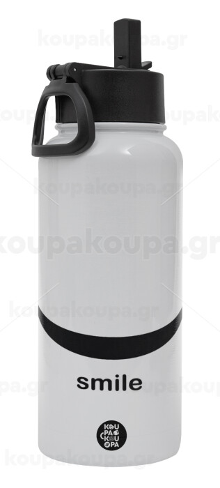 Smile!!!, Metal mug thermo White with Straw and Spout Lid (Stainless steel), double wall, 950ml