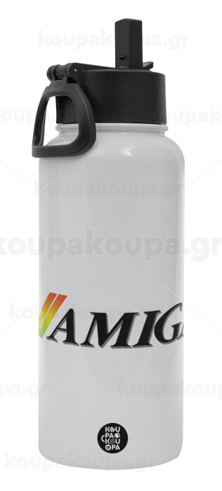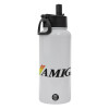 amiga, Metal mug thermo White with Straw and Spout Lid (Stainless steel), double wall, 950ml