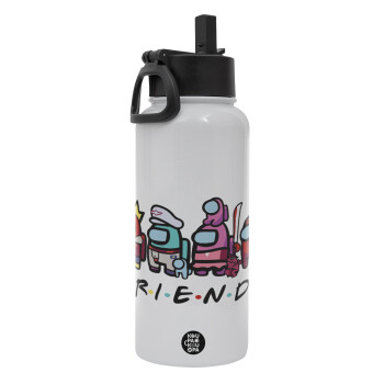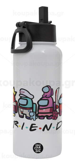 Among US Friends, Metal mug thermo White with Straw and Spout Lid (Stainless steel), double wall, 950ml