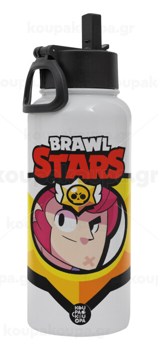 Brawl Stars Colt, Metal mug thermo White with Straw and Spout Lid (Stainless steel), double wall, 950ml