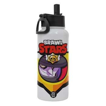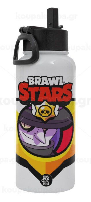 Brawl Stars Mortis, Metal mug thermo White with Straw and Spout Lid (Stainless steel), double wall, 950ml