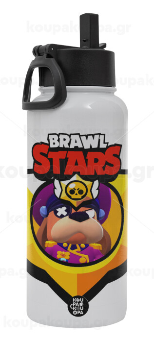 Brawl Stars Ruffs, Metal mug thermo White with Straw and Spout Lid (Stainless steel), double wall, 950ml
