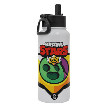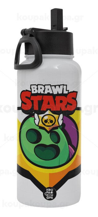Brawl Stars Spike, Metal mug thermo White with Straw and Spout Lid (Stainless steel), double wall, 950ml