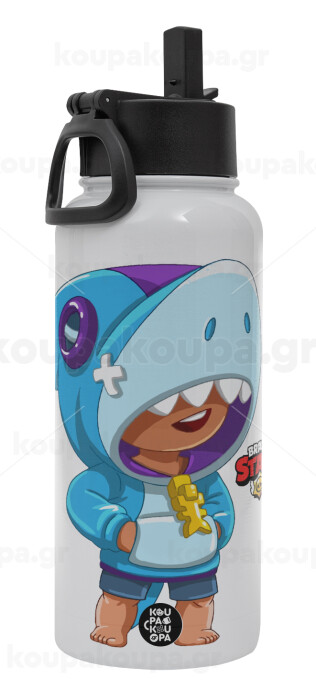 Brawl Stars Leon Shark, Metal mug thermo White with Straw and Spout Lid (Stainless steel), double wall, 950ml