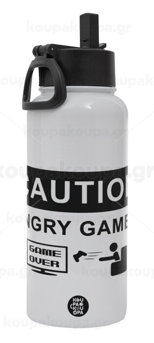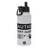 Caution, angry gamer!, Metal mug thermo White with Straw and Spout Lid (Stainless steel), double wall, 950ml