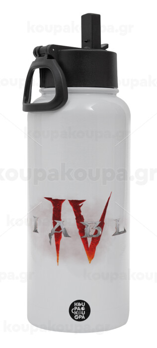 Diablo iv, Metal mug thermo White with Straw and Spout Lid (Stainless steel), double wall, 950ml