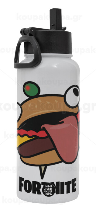 Fortnite Durr Burger, Metal mug thermo White with Straw and Spout Lid (Stainless steel), double wall, 950ml