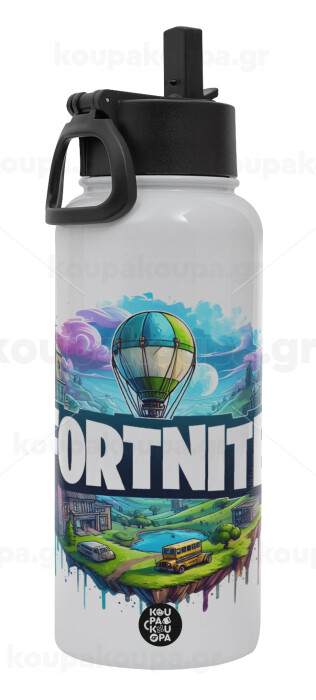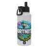 Fortnite land, Metal mug thermo White with Straw and Spout Lid (Stainless steel), double wall, 950ml