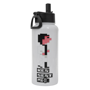 Ken sent me, Leisure Suit Larry, Metal mug thermo White with Straw and Spout Lid (Stainless steel), double wall, 950ml