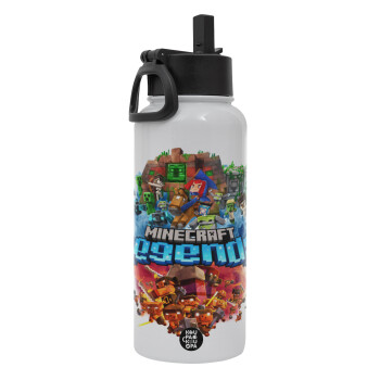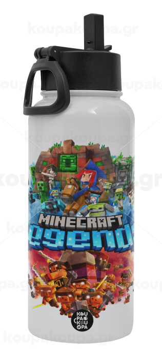 Minecraft legends, Metal mug thermo White with Straw and Spout Lid (Stainless steel), double wall, 950ml