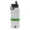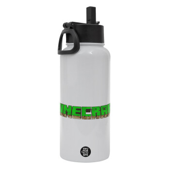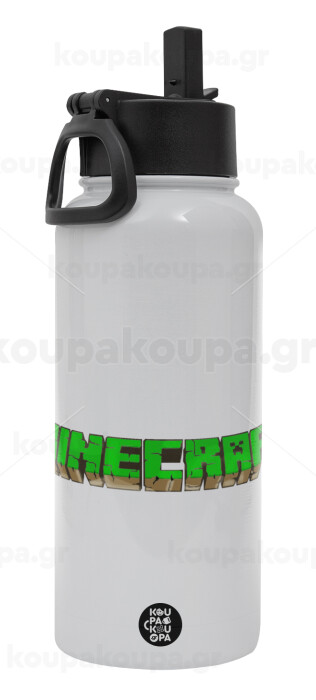 Minecraft logo green, Metal mug thermo White with Straw and Spout Lid (Stainless steel), double wall, 950ml