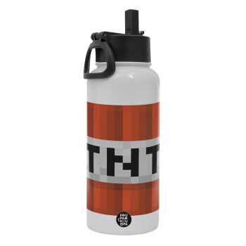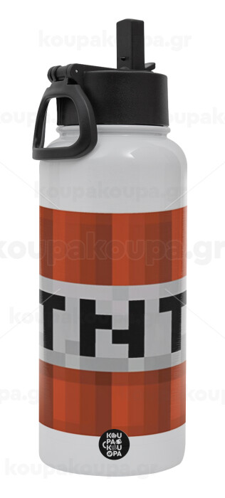 Minecraft TNT, Metal mug thermo White with Straw and Spout Lid (Stainless steel), double wall, 950ml