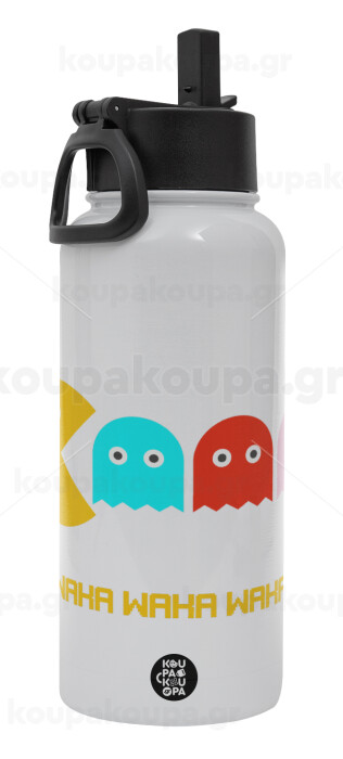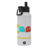 Pacman waka waka waka, Metal mug thermo White with Straw and Spout Lid (Stainless steel), double wall, 950ml