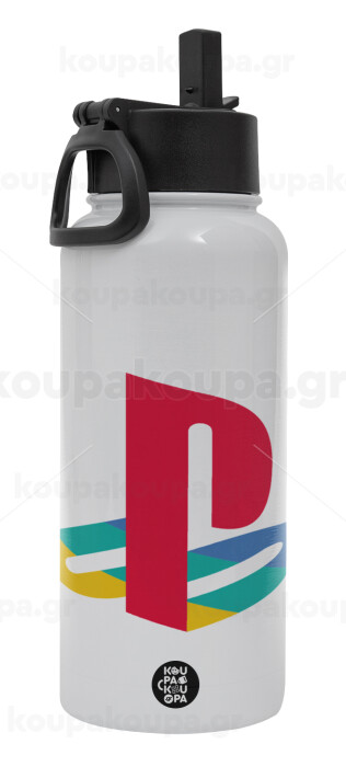Playstation, Metal mug thermo White with Straw and Spout Lid (Stainless steel), double wall, 950ml