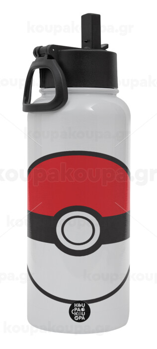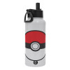 Pokemon ball, Metal mug thermo White with Straw and Spout Lid (Stainless steel), double wall, 950ml