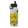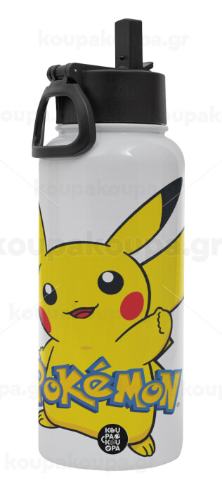 Pokemon pikachu, Metal mug thermo White with Straw and Spout Lid (Stainless steel), double wall, 950ml