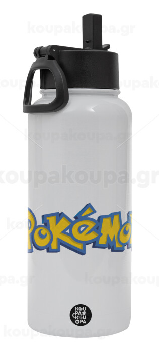 Pokemon, Metal mug thermo White with Straw and Spout Lid (Stainless steel), double wall, 950ml