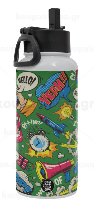 Thermal bottle with double walls, foldable spout, and foldable handle and straw. Discover the ideal bottle for each of your adventures! The Koupakoupa with a capacity of 950 ml has double insulation walls that keep your drinks cool or warm for longer. It is made of high-quality stainless steel and BPA-free plastic, ensuring your safety and hygiene. With a practical straw, foldable spout, and wide handle, it is the ultimate accessory for your everyday life. Secure yours today and enjoy the comfort and quality you deserve!