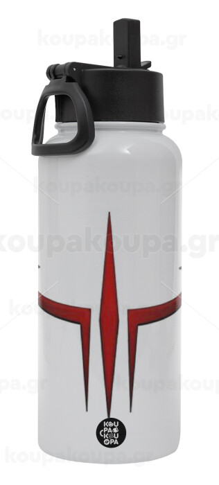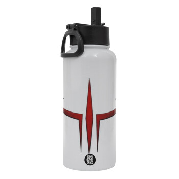 Quake 3 arena, Metal mug thermo White with Straw and Spout Lid (Stainless steel), double wall, 950ml